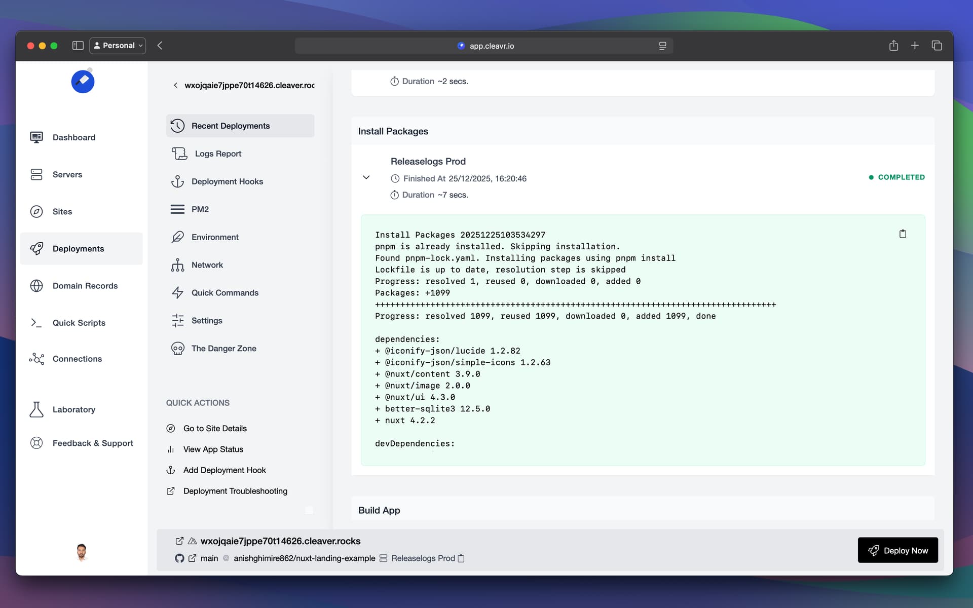 That is all. PNPM will be used for your next deployment, Cleavr will configure PNPM automatically on existing and new servers.